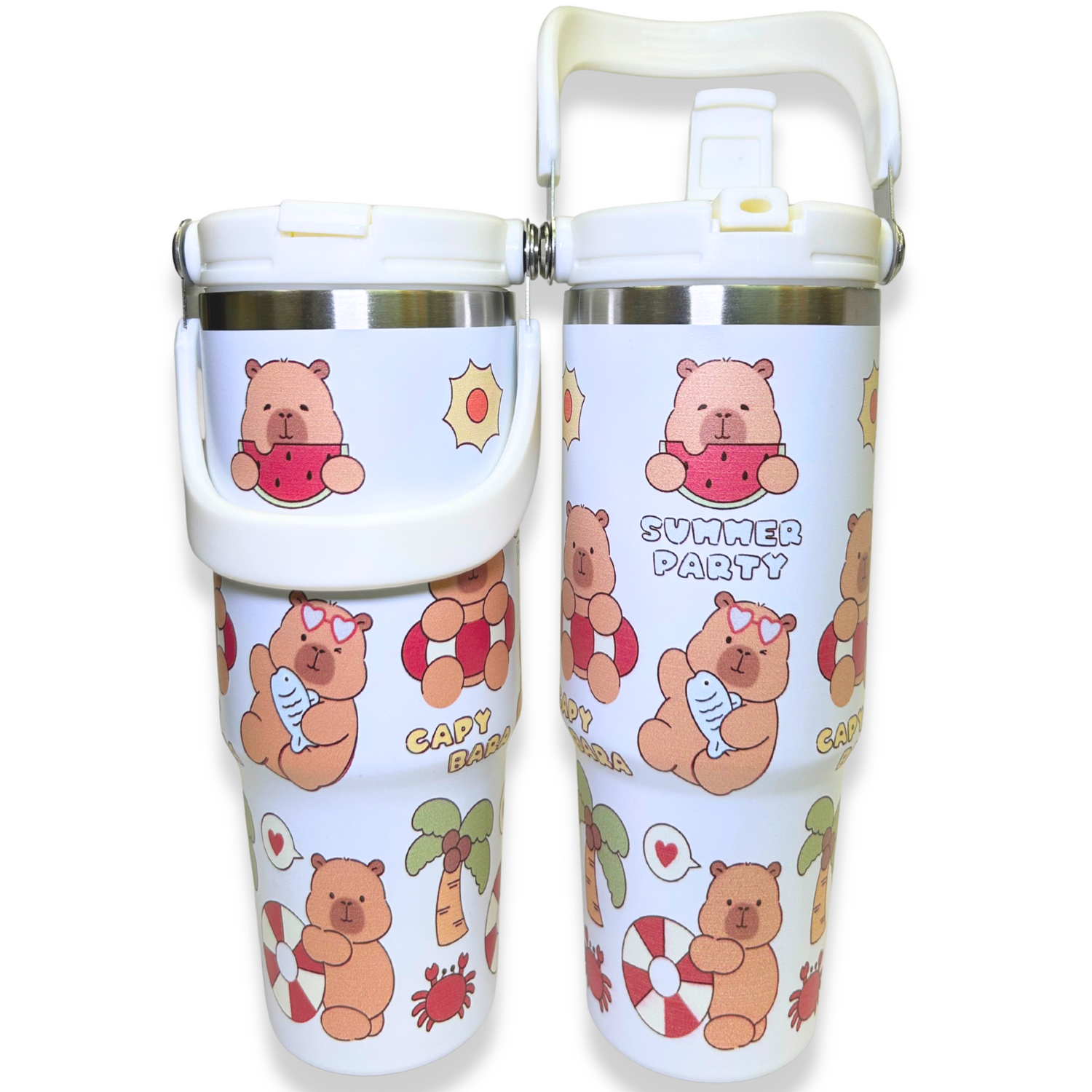 Whether you’re lounging, studying, or exploring this capybara tumbler is your go to for stylish sipping. With its soft colors and lovable design, you’ll want to take a sip from it all the time.