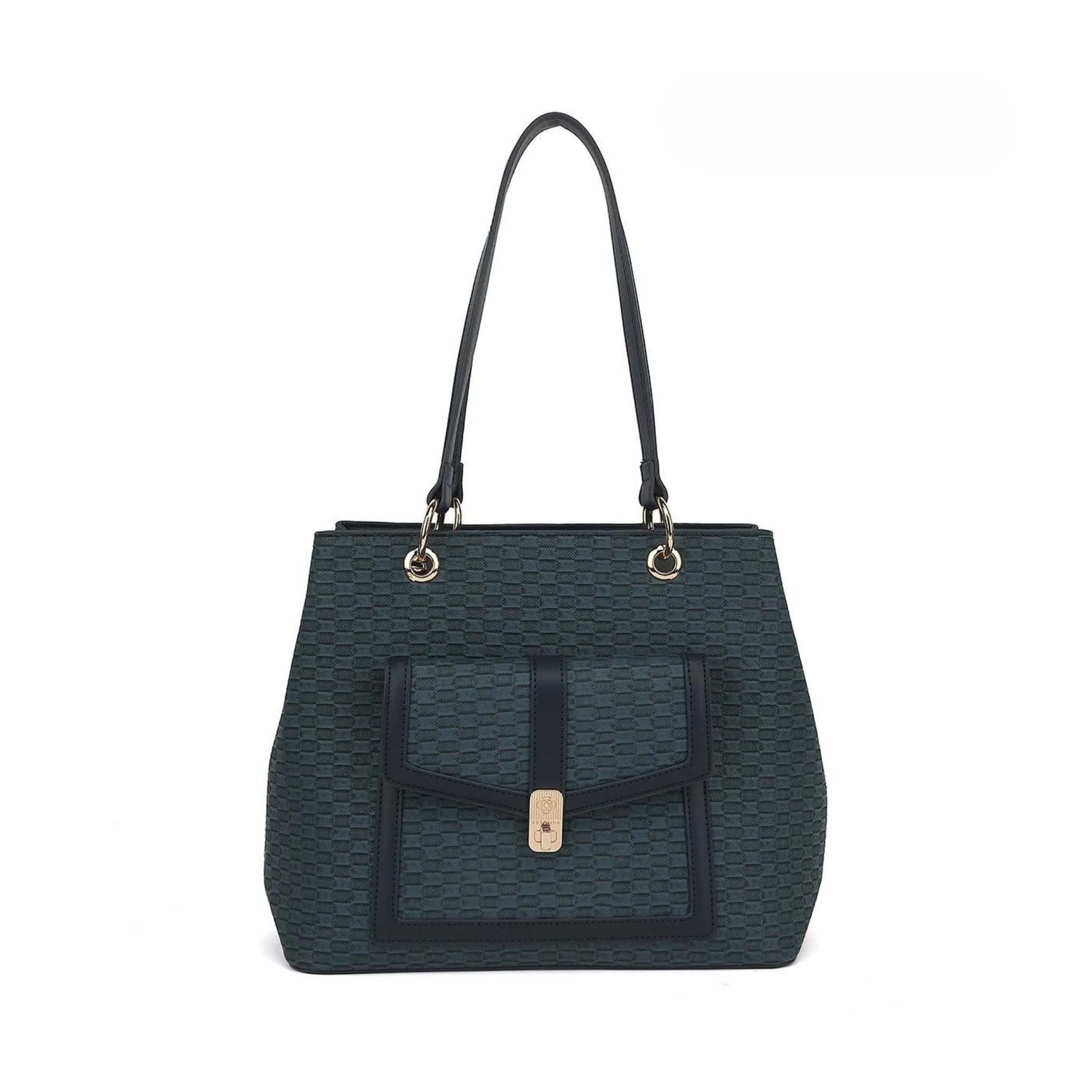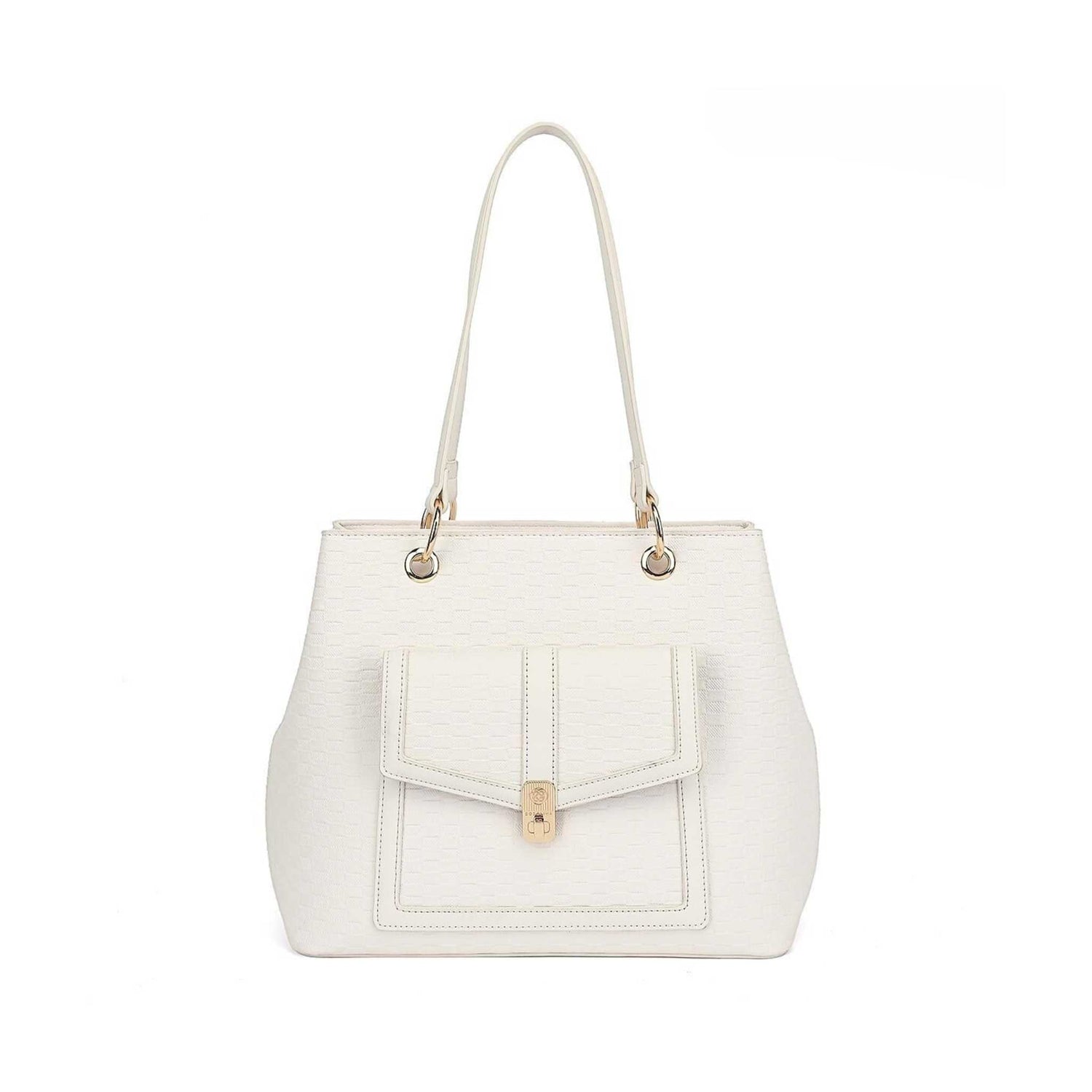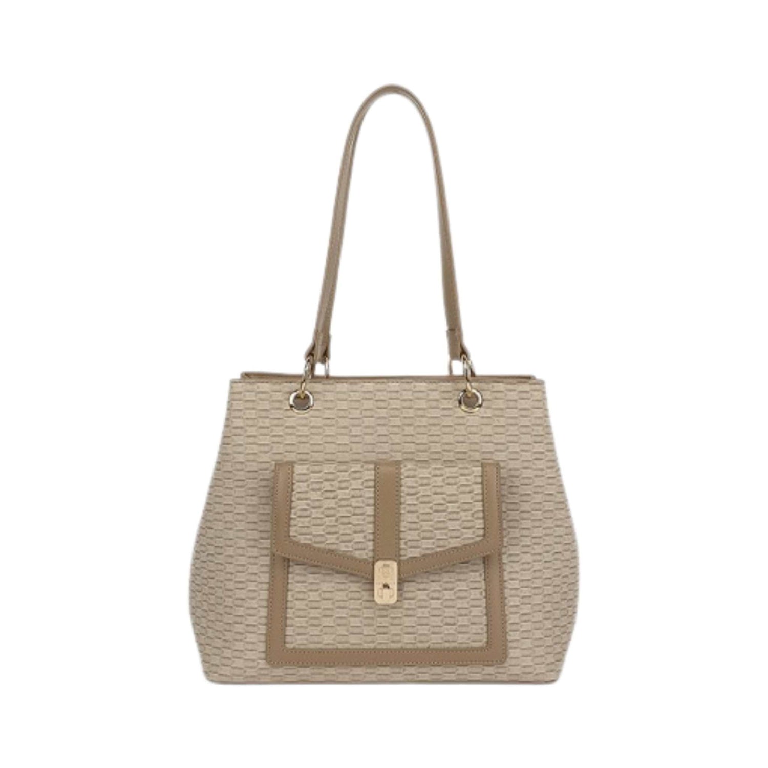 Add style and texture to your look with this stylish double compartment bag, featuring 3 interior pockets and a unique spot pattern.Â