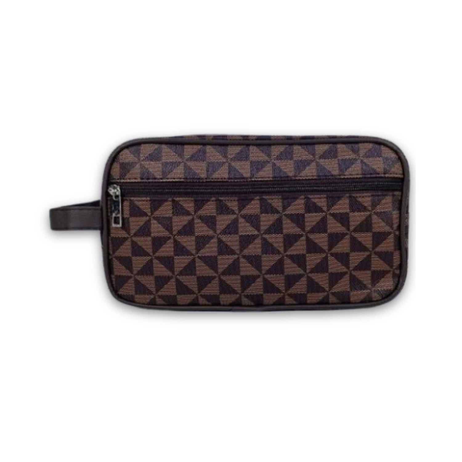 Stay stylish and organized with this unisex geometric pouch. The bold pattern details makes it a standout accessory. Perfect for carrying toiletries, small essentials and travel items.