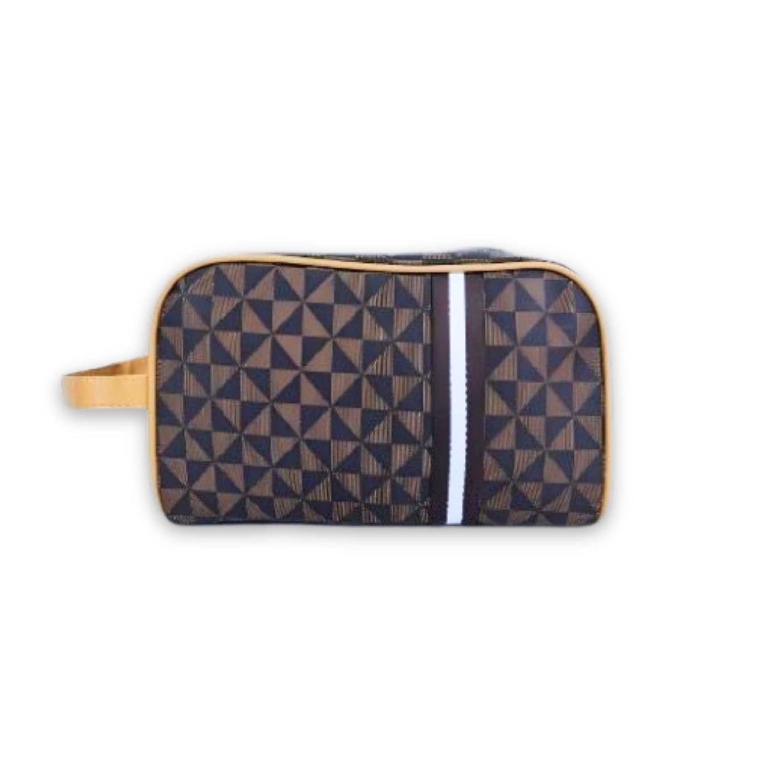 Keep your essentials secure and stylish with this geometric pouch, Featuring a bold triangle pattern with a sleek stripe detail, this pouch combines fashion and function in one. Lightweight and durable, perfect as a wallet, travel organizer or toiletry bag it offers versatile use for both men and women.